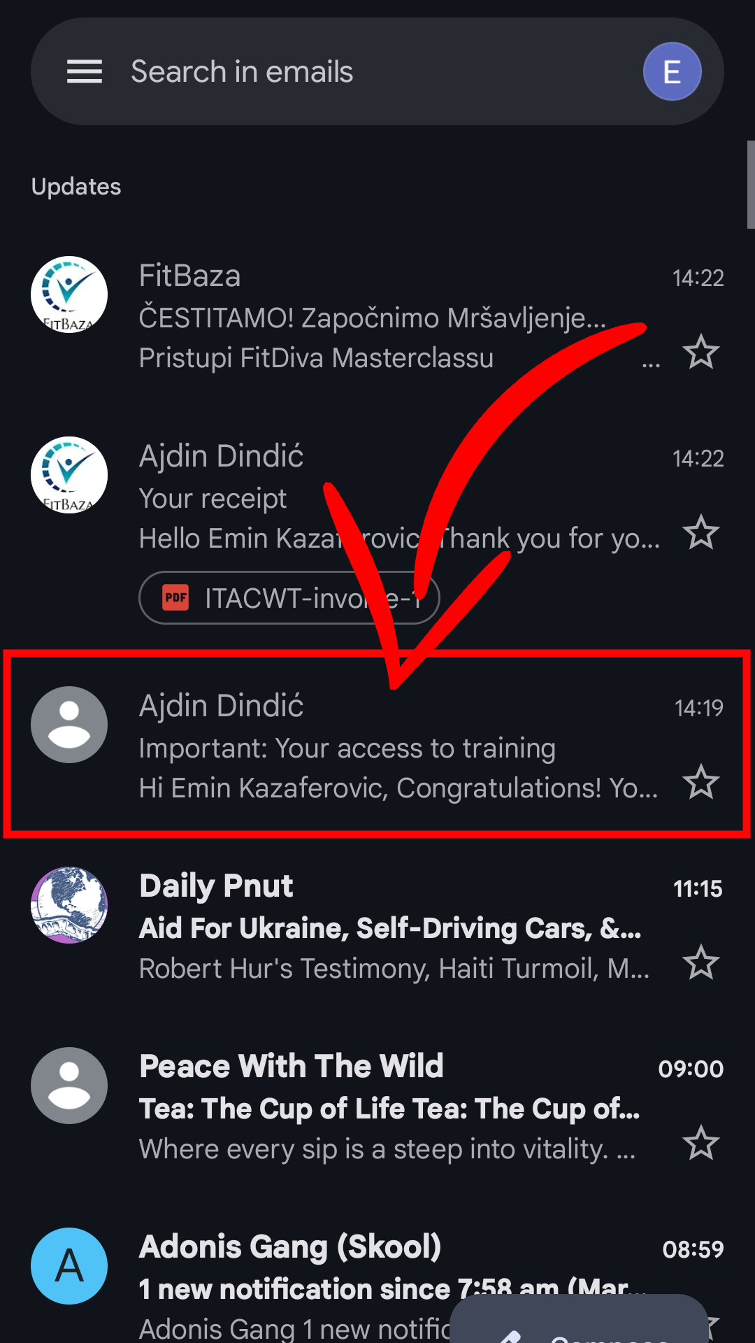 Otvorite Email koji je na engleskom ili ćirilici koji se zove: