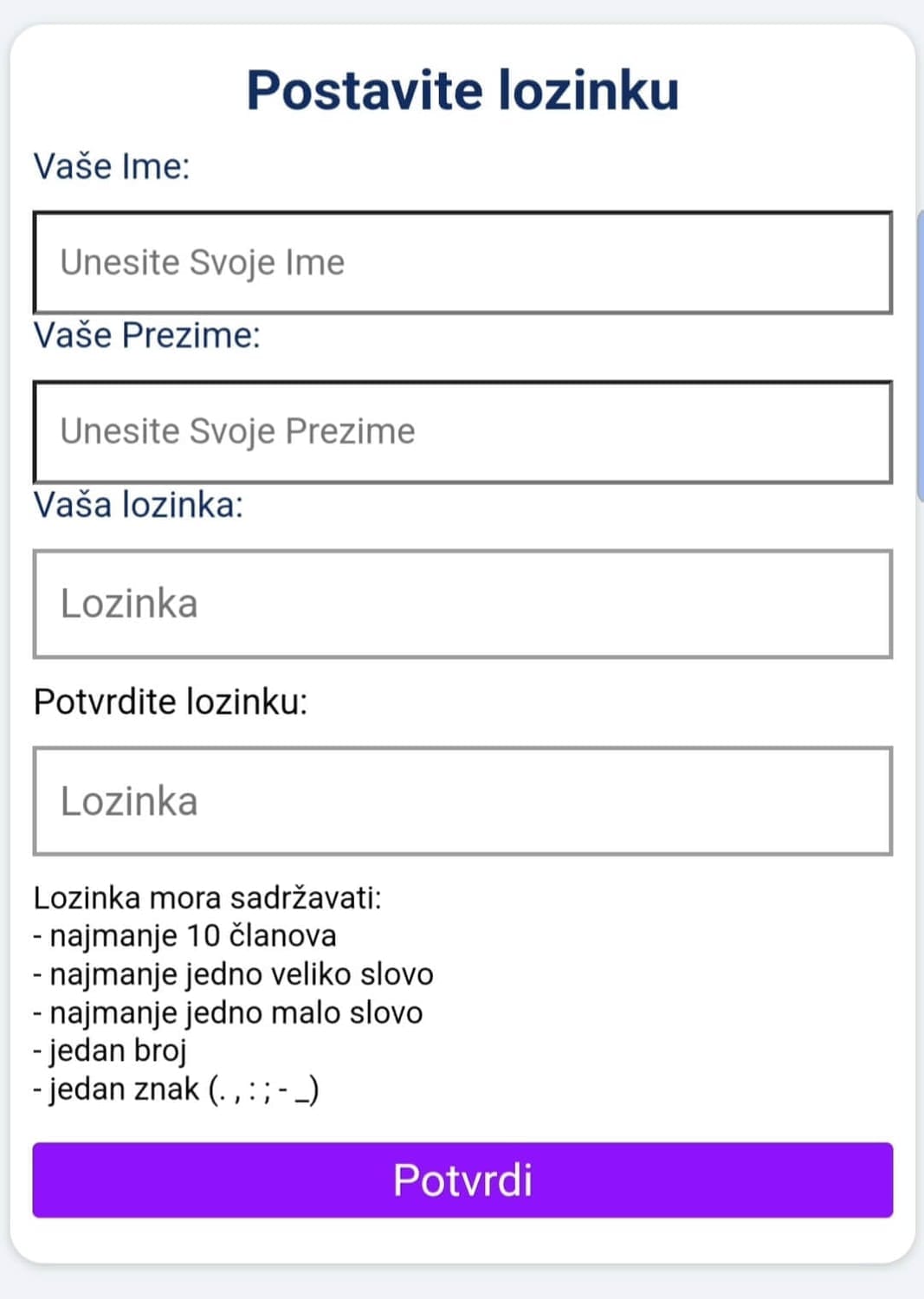 Kreirajte svoju lozinku i uživajte!